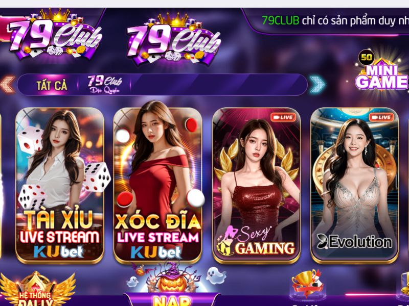 Live Game 79Club là một trong những điểm đến casino trực tuyến đẳng cấp bậc nhất hiện nay. Với hệ thống sảnh game phong phú, giao diện hiện đại và tỷ lệ trả thưởng hấp dẫn, nơi đây thu hút đông đảo người chơi từ khắp nơi, đặc biệt là những ai yêu thích trải nghiệm casino chân thực.