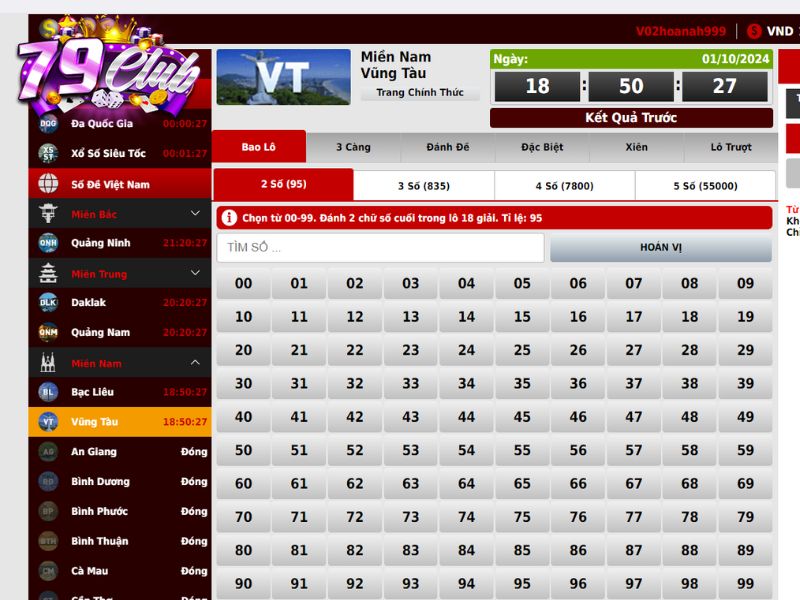 Đối với những anh em ưa thích sự quen thuộc, thì lô đề truyền thống tại 79Club vẫn là sân chơi không thể bỏ qua. Tại đây, bạn có thể lựa chọn cược theo kết quả xổ số miền Bắc, Trung hoặc Nam, với đa dạng hình thức như: