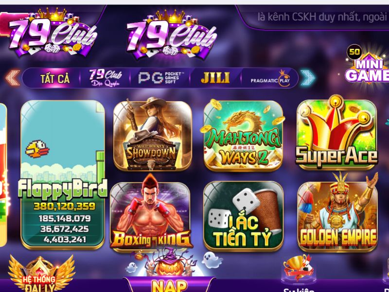 Độc quyền 79Club: Sảnh riêng của 79Club với các tựa game chỉ có tại đây – tích hợp độc quyền, tỷ lệ thưởng lớn và thường xuyên có sự kiện dành riêng cho người chơi.
